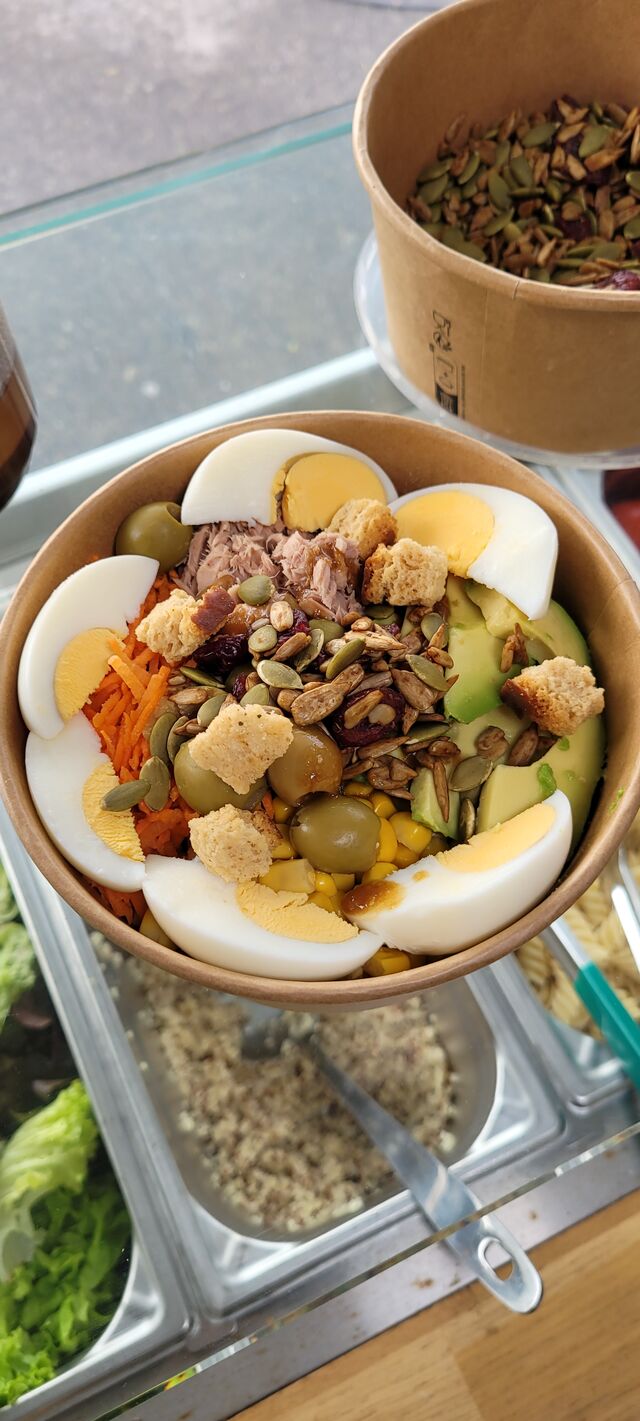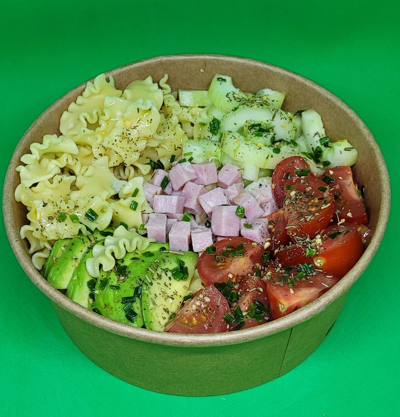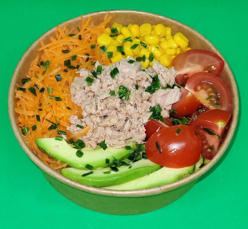 Les salades sont composées aux choix avec une base de salade verte ou de pâtes ou de Riz ou céréales (boulgour, quinoa…)